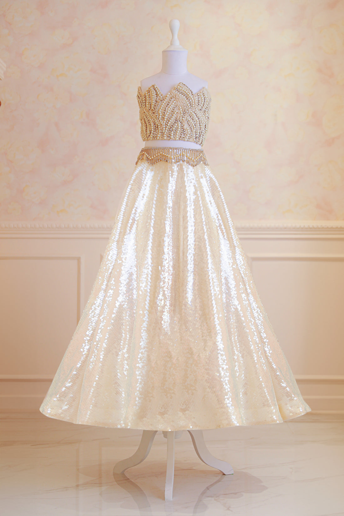A masterpiece of timeless luxury, this tube neck ball gown is designed to captivate. Crafted...