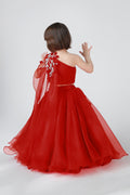 This graceful one-shoulder lehenga is crafted from soft organza fabric, loved for its lightweight feel and beautifully airy drape. The lehenga is fully lined with smooth satin lining, offering a gentle, comfortable feel against the skin while helping the lehenga hold its elegant volume.The one-shoulder bodice is adorned with delicate floral embroidery, adding a refined statement and festive charm. The fitted upper flows seamlessly into a voluminous flared skirt, created with layered soft organza panels that move fluidly with every step, giving the gown a dreamy, floating silhouette.A sheer organza overlay enhances the softness of the design, while the clean back finish maintains a polished and balanced look. Thoughtfully designed for ease of movement and comfort, this lehenga is perfect for twirls, celebrations, and special occasions.Blending soft organza, smooth satin lining, and elegant detailing, this lehenga is available in four stunning colours – Blue, Black, Hot Pink, and Red .