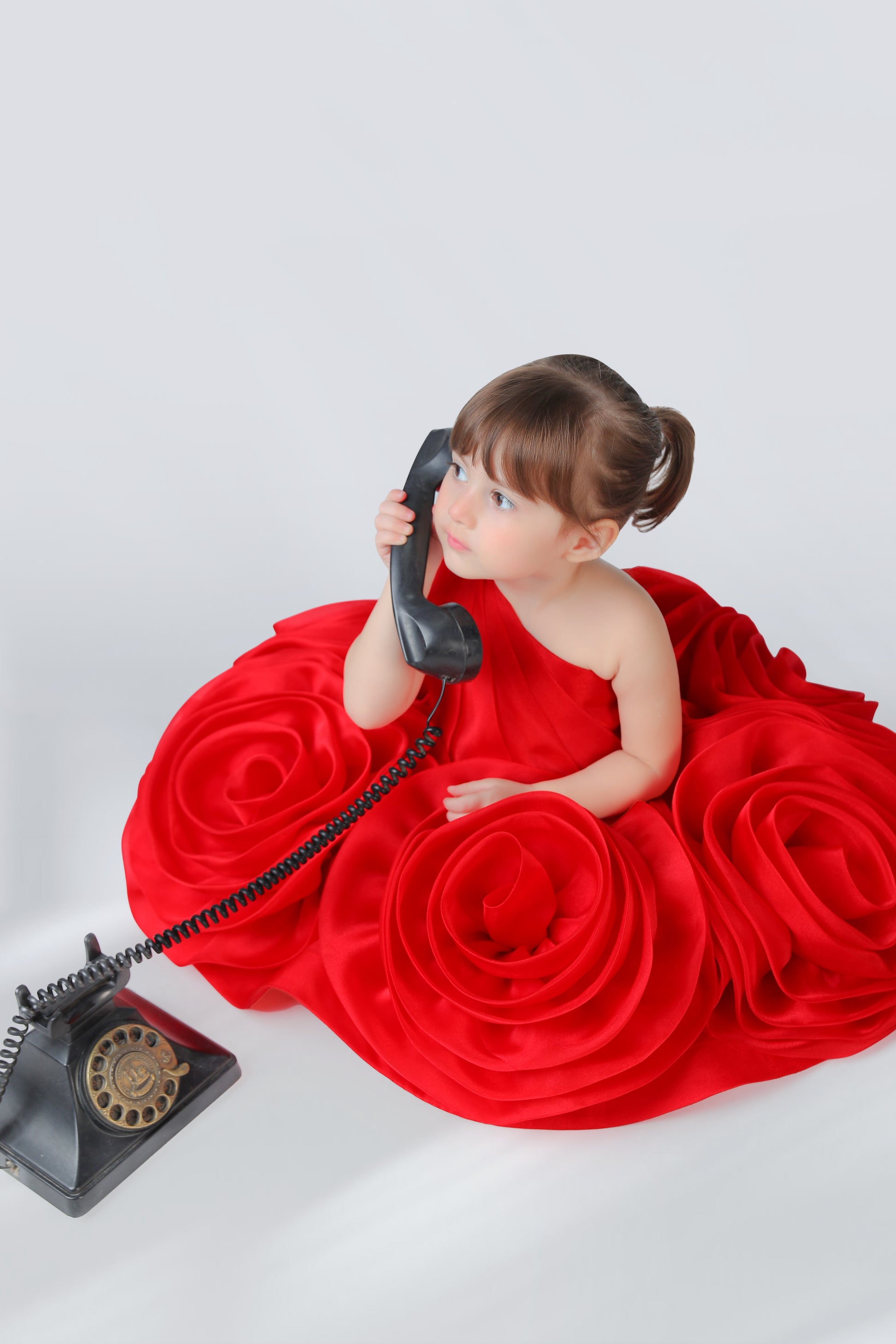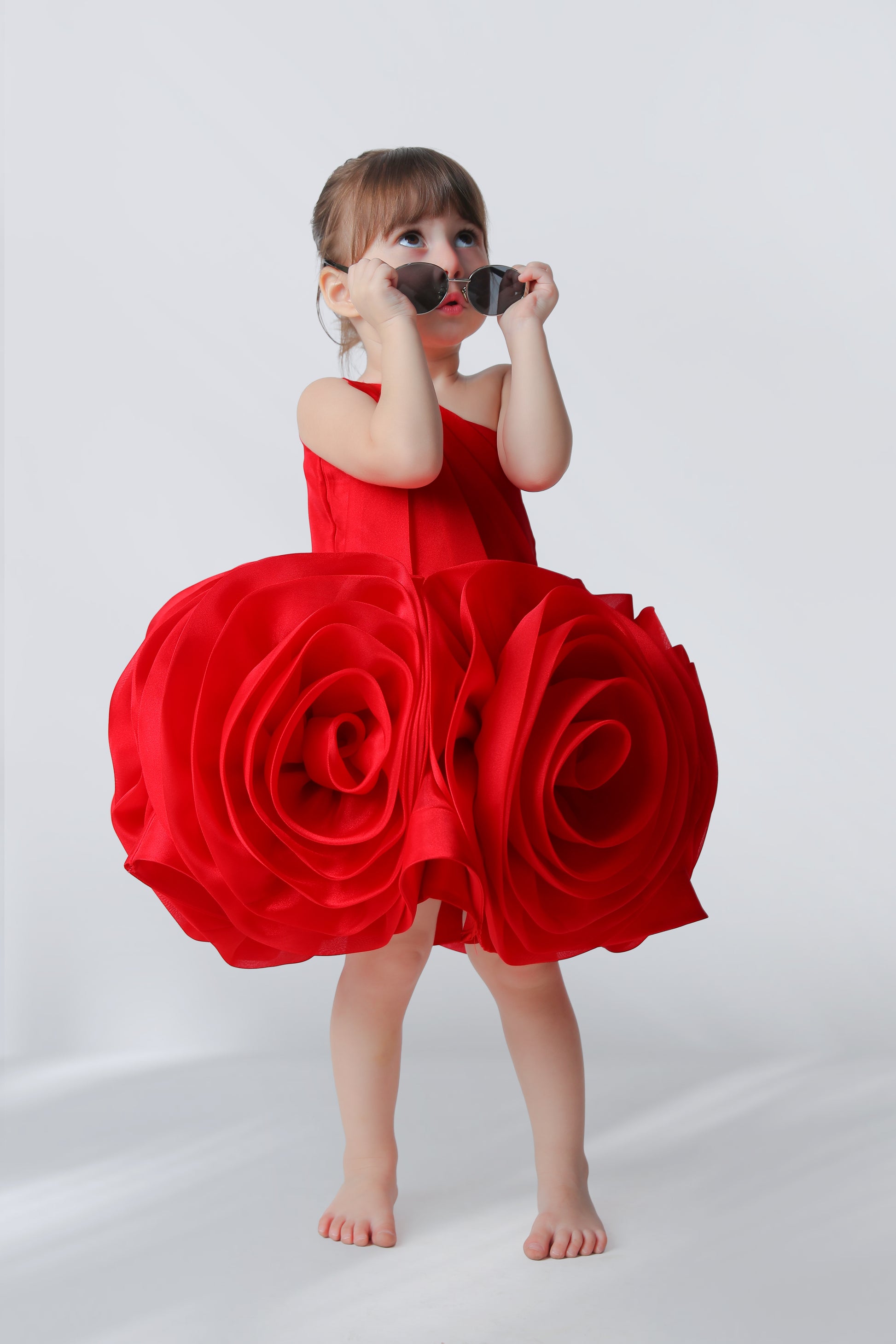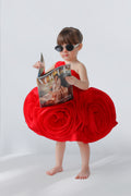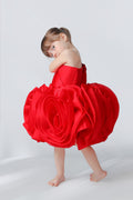 Dress your girl like a ballerina in this pretty one shoulder Valerie Ruby Dress made from a fine tissue fabric. The bodice is decked with gushing flower ornaments as the neck elegantly makes its way to one shoulder. The contrast of an audacious and graceful Couture has stolen the show this spring with the most whimsical design that took almost 64 hours to be made.